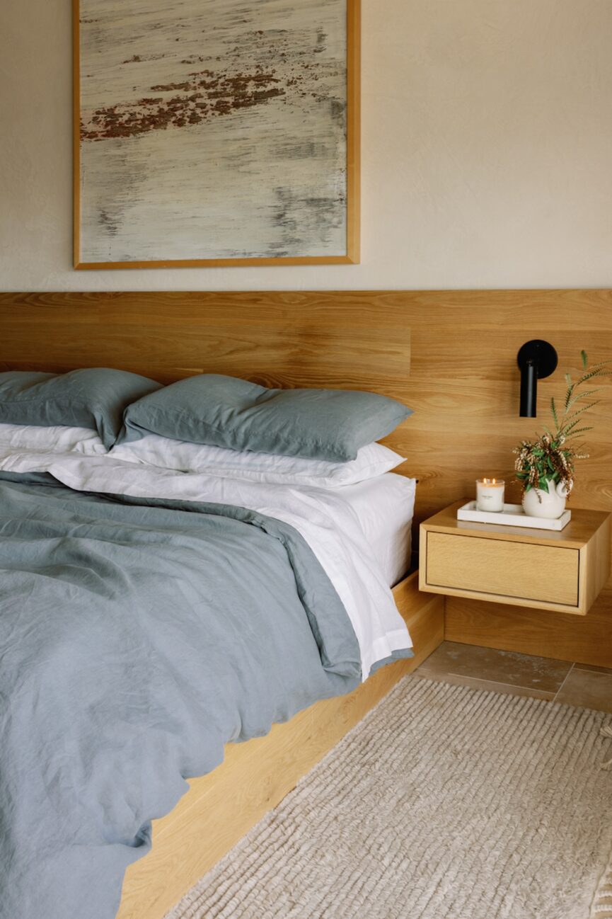 Research shows that spending time near a body of water can lift your mood, lower stress, and improve well-being. The color blue is incredibly calming, so a blue bedroom is a natural choice. “I always lean towards soft green tones in bedrooms, as these colors are linked to relaxation and lower levels of stress,” Daniele Doerge, color expert from California Paints, shares. “A powdery, slightly muted blue creates a calming atmosphere that feels soothing—perfect for sleep-focused spaces.”